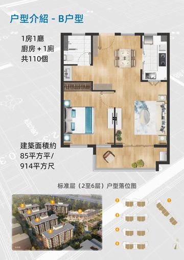 公寓含單人房、一室一廳、兩房一廳三種戶型,適老化細部完善(如三分離衛浴、電磁爐灶台